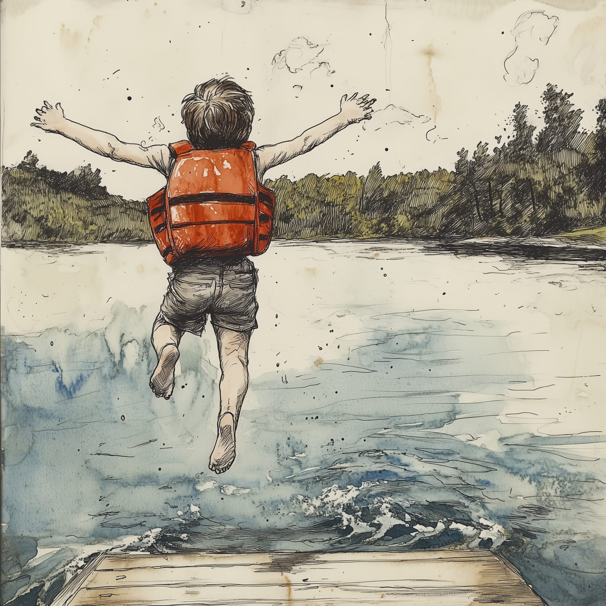Relief washed over the young father. It was a completely understandable problem. Jeffry wasn't suffering from a lack of care or attention. He was a little nervous. It felt different than swimming in pools where he could see the depths. The murkiness of this water hid away the fish, tangles of seaweed, monsters, and squishy things. Jeffry's eyes pleaded with his father. In the lake he faced the unknown.